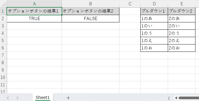 シートには、フォームからの情報を残す欄、プルダウン用の文字を作ります。