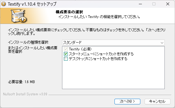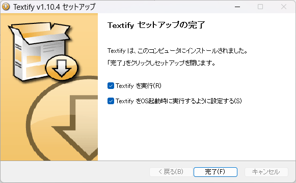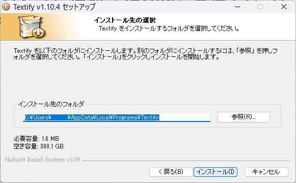 ダウンロードして、textify_setup.exeを実行