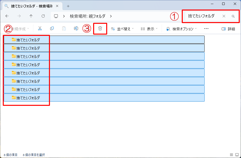 その中に、それぞれ「捨てたいフォルダ」が入っている構成です。