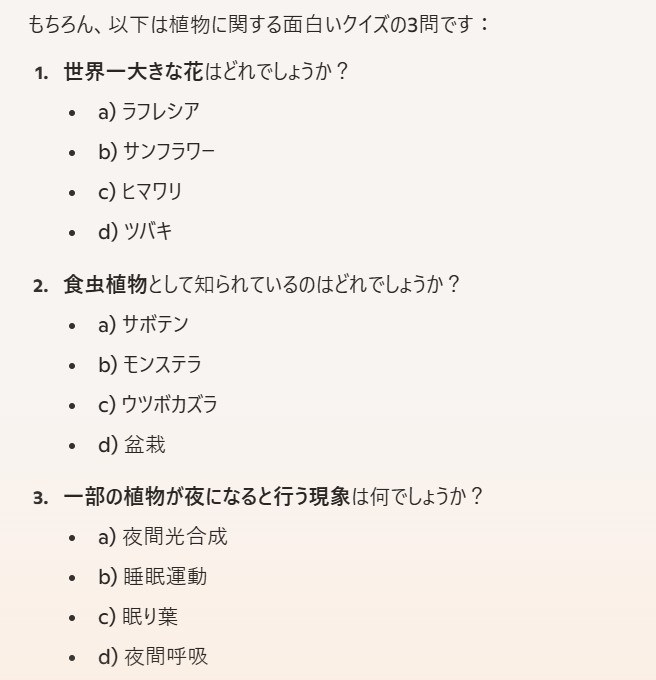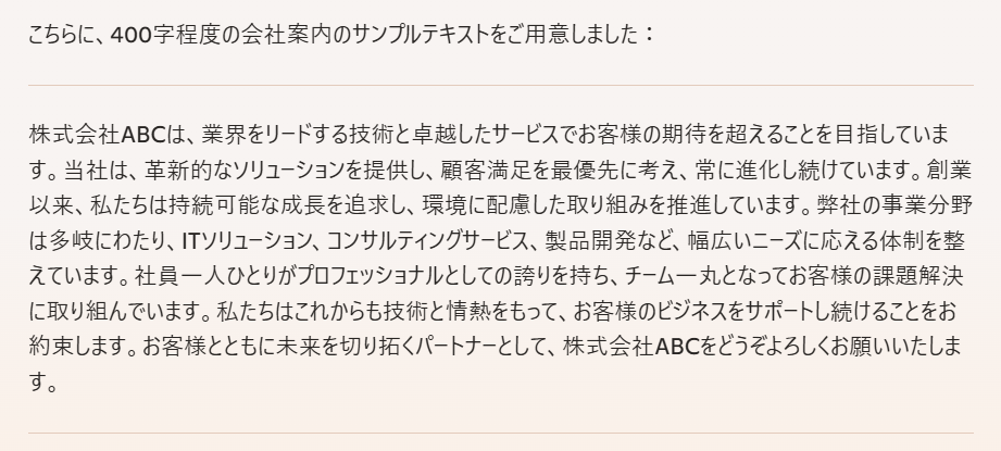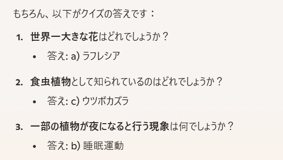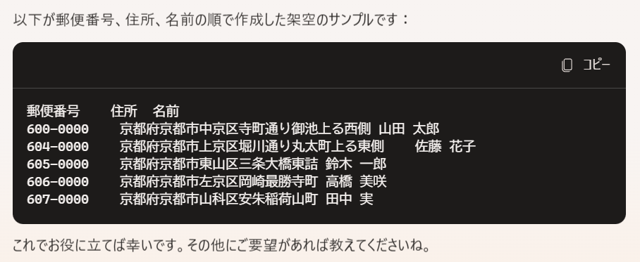 コパイロット コパイロットにダミーのテキスト作ってもらった。 2025.02.16 Post Share Hatena Line Pocket RSS feedly Pin it 記事のタイトルとURLをコピーする 郵便番号 住所 名前 の順で架空のサンプル5個作ってください 400字程度の会社案内のサンプルテキストを作ってください 植物に関する、面白いクイズを5問作ってください 答えは? いろいろな、パターンでテキスト作ってくれます。 インデザインで自動処理。テキストファイルを読み込んで、宛名を作成するジャバスクリプト 前の記事 Windowsをより使いやすくする『Microsoft PowerToys』のインストールしました。 次の記事