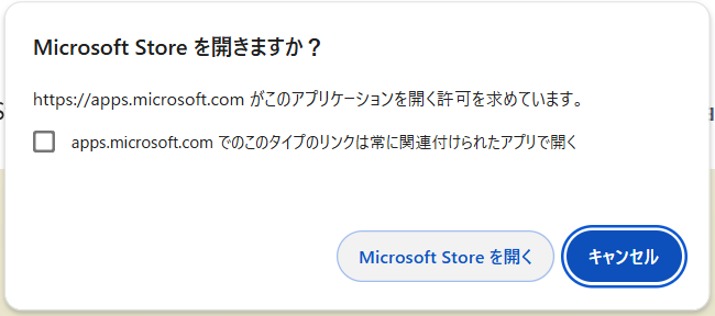 『Microsoft Store を開く』をクリック。