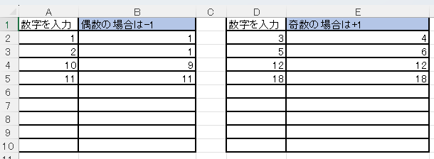 偶数の場合は-1にする エクセル関数