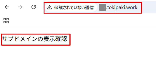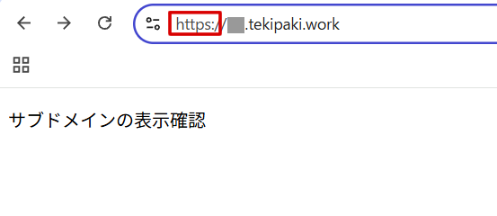 クロームでURLを入れて確認したのですが、httpsになっていて、表示されていませんでした。